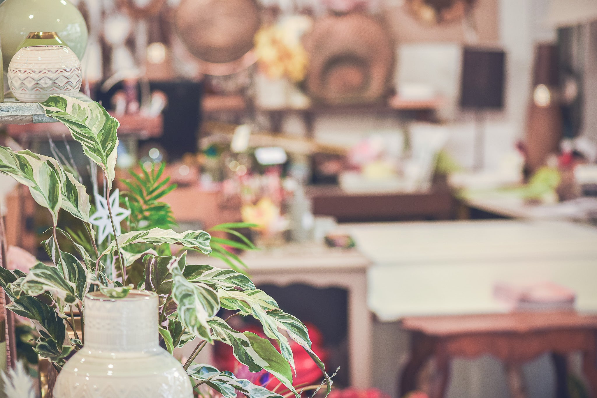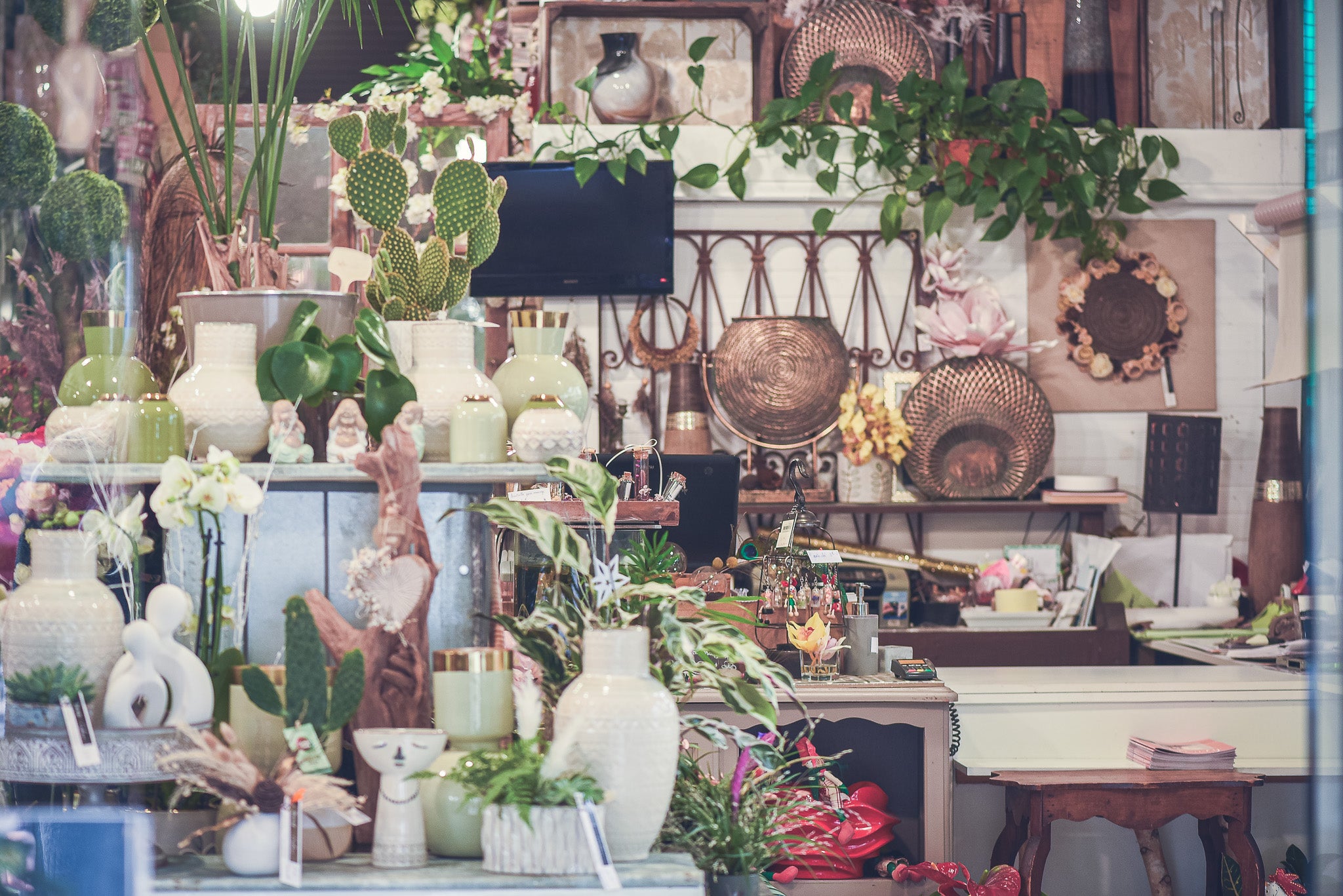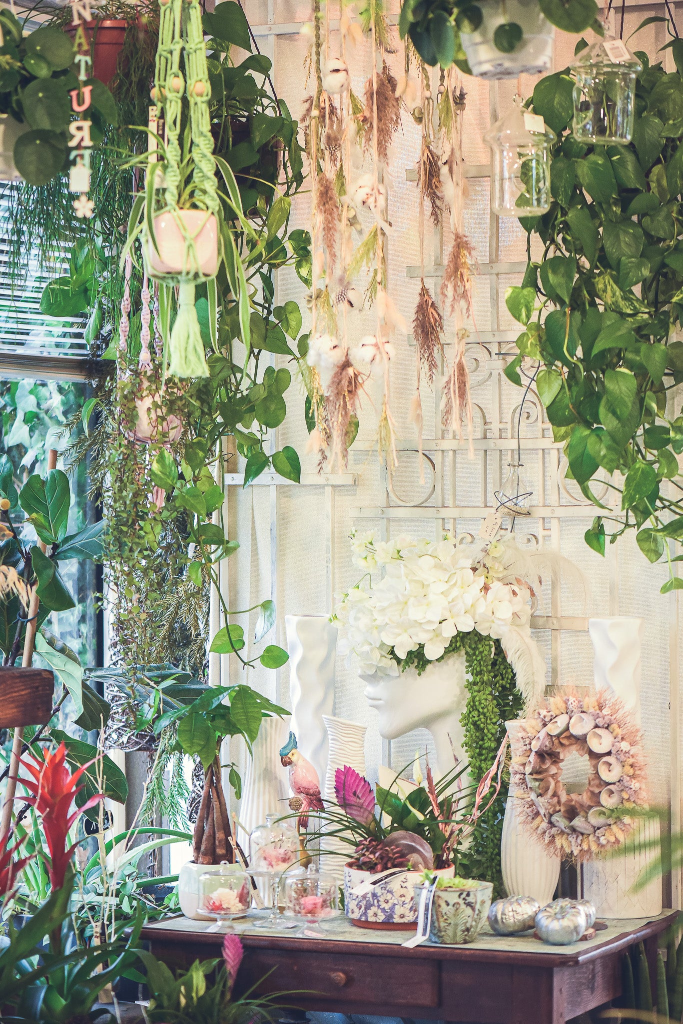 contemporaines. Les objets anciens, chinés avec soin, côtoient des compositions végétales